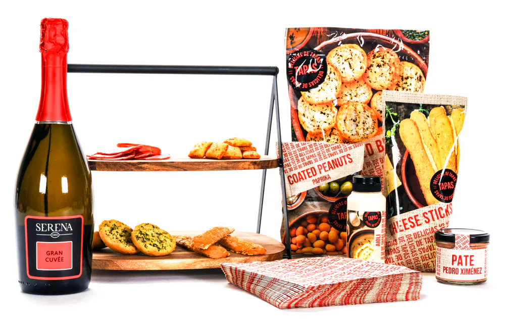 Wanneer de dagen korter worden en de avonden langer, is er niets fijner dan samen genieten van een vleugje warmte en sfeer. Dit kerstpakket brengt de zon van het zuiden naar jouw huiskamer en nodigt uit tot een avond vol gezelligheid. Stel je voor: een prachtig houten dienblad dat de basis vormt voor een tafel vol kleine verrassingen. Het is een uitnodiging om samen te proeven, te lachen en herinneringen te maken.