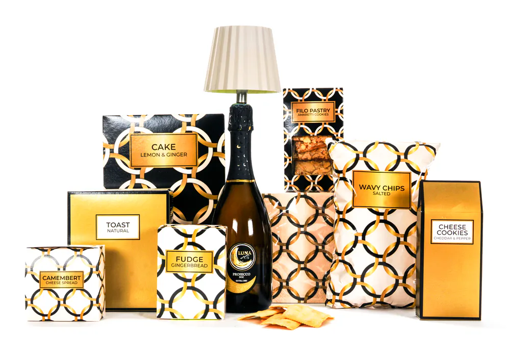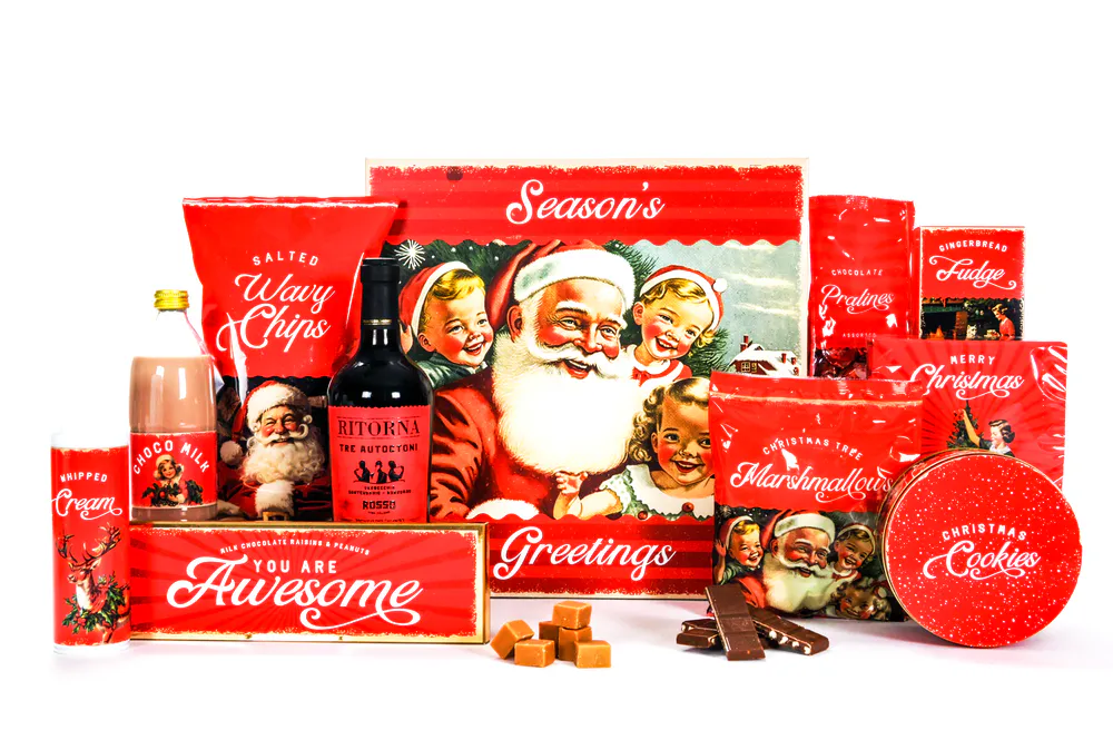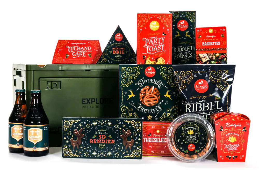 Met het "Delightful Festivities" kerstpakket tovert u moeiteloos een feestelijke sfeer tevoorschijn. Geniet samen van de lekkernijen en vier het leven met een toast op het goede!