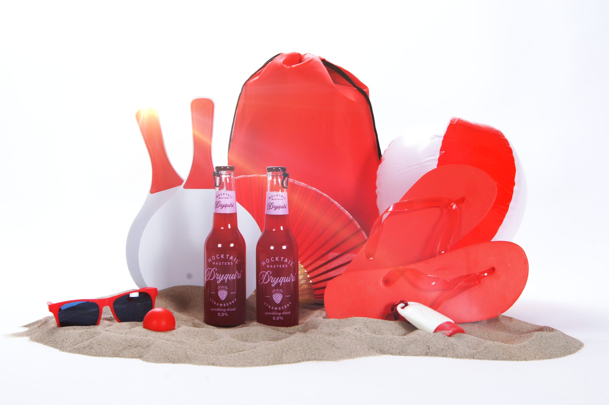Een koelbox, feestelijk verpakt in een geschenkdoos – inclusief tennisset, zonnebril, zonnebrandcrème en een flesje rosé. Zomerser wordt het niet!